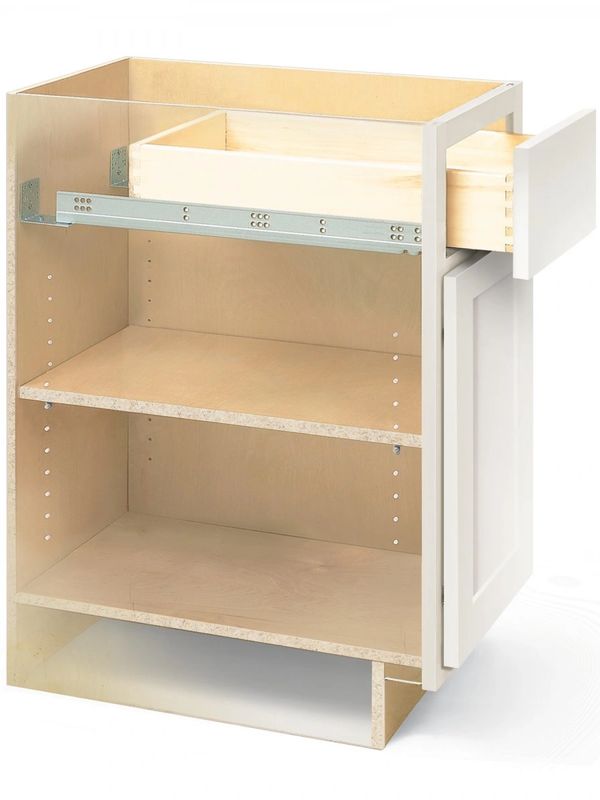 Traditional cabinet construction, with the face of the cabinet box reinforced with a 3/4″ thick solid hardwood frame. The face frame adds structural rigidity and is finished to match the cabinet door.